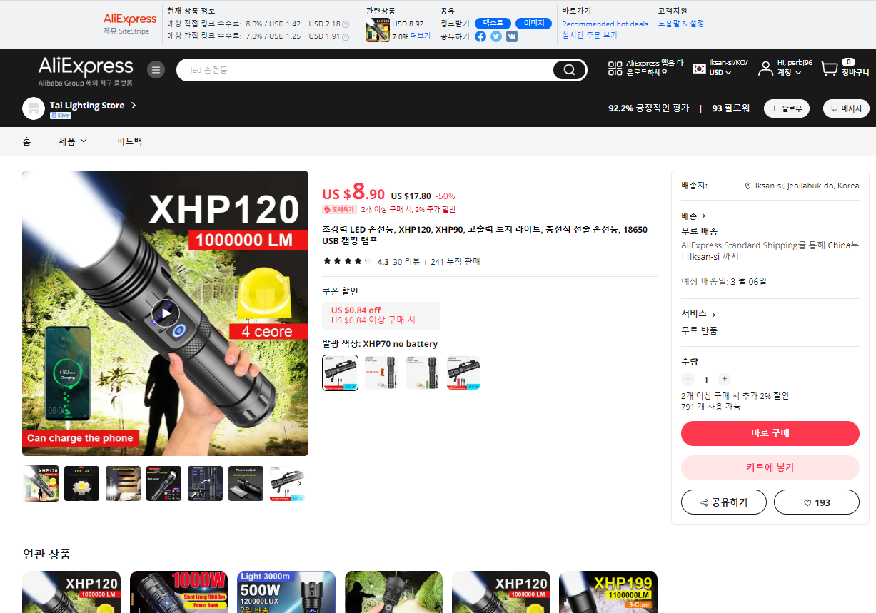위 처럼 제작했을 경우 해당 버튼 클릭 시 우측처럼 알리 익스프레스 제휴 링크로 이동하게 됩니다.