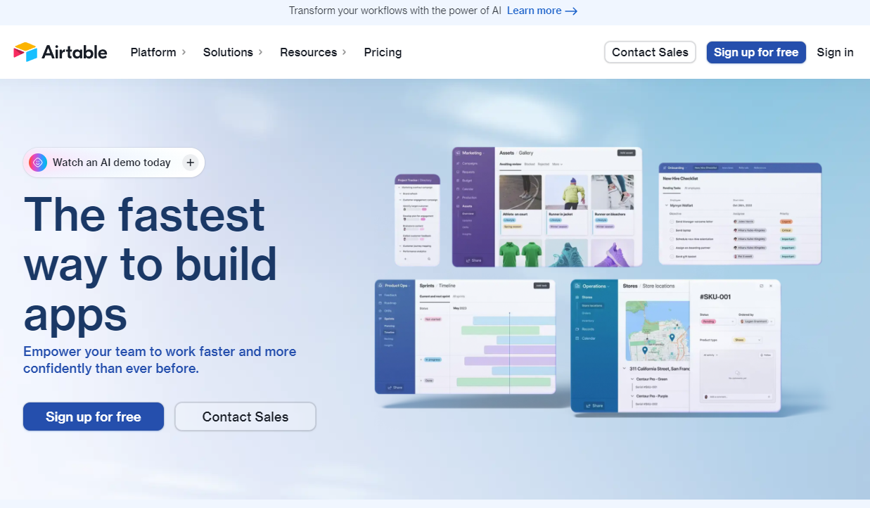 먼저, 에어테이블에서 회원가입을 해주세요 우측 상단의 sign up free 파란 버튼을 눌러 회원가입을 진행해주시면 됩니다. 구글 아이디로 회원가입을 하면 간단하게 구글 어카운트와 연동됩니다. 회원가입이 끝났다면 로그인 해줍니다.
