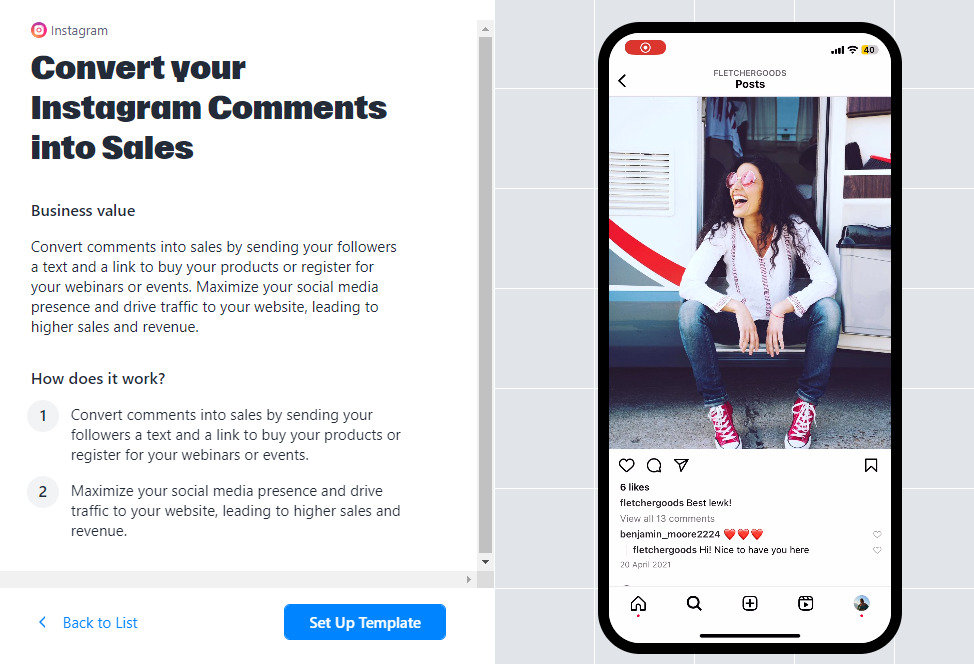 into sales을 클릭해주시고 set up template를 선택해주시면 자동화 제작 페이지로 이동합니다.